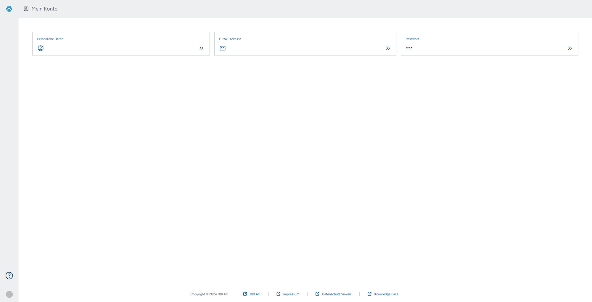 Anschließend solltest du dein Konto mit den Kacheln "Persönliche Daten", "E-Mail-Adresse", "Passwort" sehen.