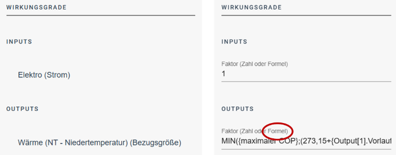 Der COP einer Wärmepumpe berechnet sich unter anderem mittels des „maximalen COP“. Dieser ist als benutzerdefiniertes Attribut innerhalb des Energiesystem für diese Wärmepumpe fest definiert.